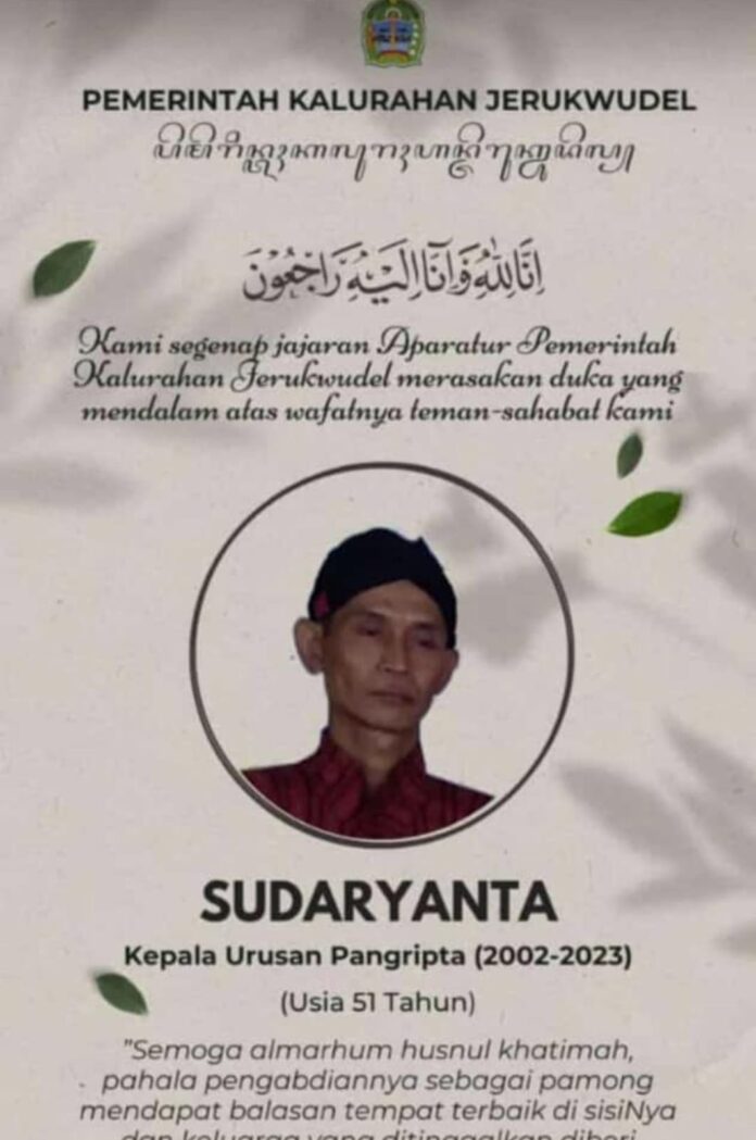 Girisubo (Fakta9.com)_ _// Kepala Urusan Pangripta Kalurahan Jerukwudel bernama Sudaryanto (51) tutup usia pada hari Minggu (21/10/2023) sore.