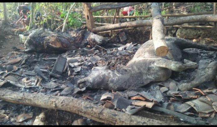 Diduga api yang berasal dari perapian tersebut terus membesar sehingga membakar kandang serta dua ekor sapi yang berada di dalamnya.