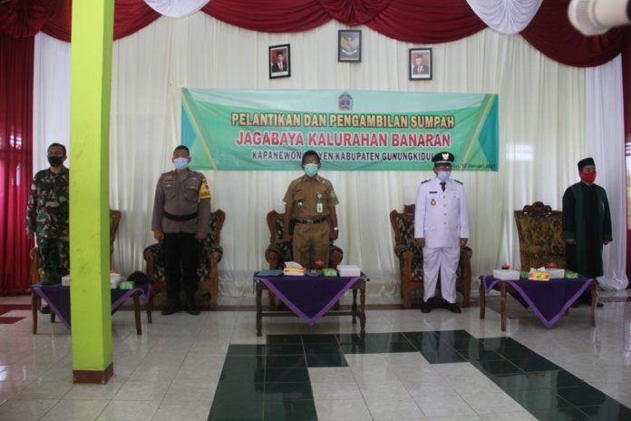 Playen, (fakta9.com)__Pelantikan dan pengambilan sumpah Jagabaya Kalurahan Banaran, Kapanewon Playen, Kabupaten Gunungkidul dilaksanakan pada Selasa (12/ 01/ 2021).
