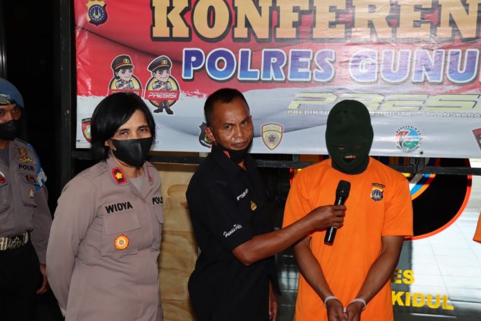 “Pelaku merekam korban yang sedang mandi dengan menggunakan HP melalui sekat bagian atas kamar mandi.” terang Kompol B. Widya Mustikaningrum saat konferensi pers di halaman Mapolres Gunungkidul Selasa (10/05/2022).