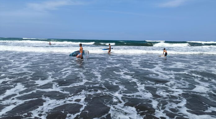 Anggota SAR Satlinmas yang mengetahui hal tersebut lantas berusaha menolong para korban dengan cara berenang ke tengah menggunakan pelampung dan papan surfing.