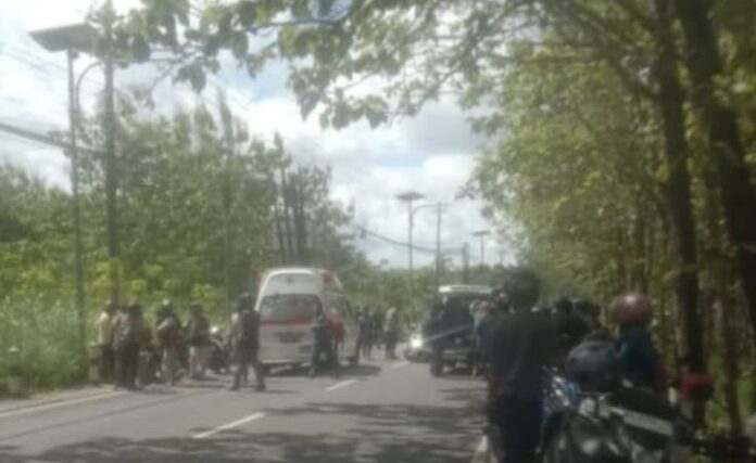 Naas, setibanya di lokasi kejadian, tiba-tiba dari arah belakang diserempet mobil Suzuki Futura yang dikemudikan pria berinisial SAW (40) warga Ngleri, Playen, Gunungkidul.