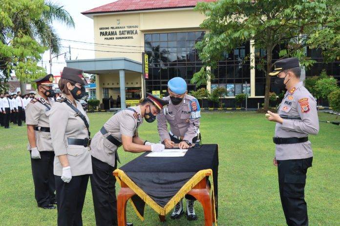 Sertijab dilakukan saat upacara di halaman Mapolres Gunungkidul, dipimpin oleh Kapolres Gunungkidul AKBP Edy Bagus Sumantri, S.I.K, Rabu (28/09/2022).