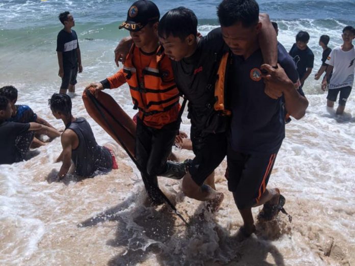 ” Mendengar informasi adanya wisatawan yang terseret ombak, Tim SAR langsung melakukan pertolongan mengevakuasi ketiga korban dan berhasil di bawa menepi,” Tutur Danang.