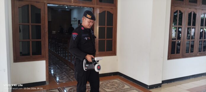 GUNUNGKIDUL, DIY (FAKTA9.COM)_ _// Guna mengamankan perayaan Natal 2024, Tim Penjinak Bom (Jibom) Gegana Polda DIY menyisir lima Gereja yang berada di Kabupaten Gunungkidul, Senin (23/12/2024) siang.