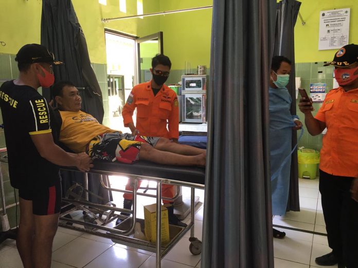 “Korban dapat terselamatkan dan masih dalam kondisi sadar namun mengalami luka sobek di lutut bagian kiri akibat terbentur batu karang.” jelasnya.
