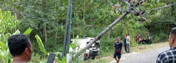 Kemudian setibanya di tempat kejadian perkara, truk yang dikemudikan Sukarji warga Padukuhan Widoro, Kalurahan Sumberwungu, Tepus, tidak kuat menanjak sehingga terperosok dan menghantam tiang listrik.