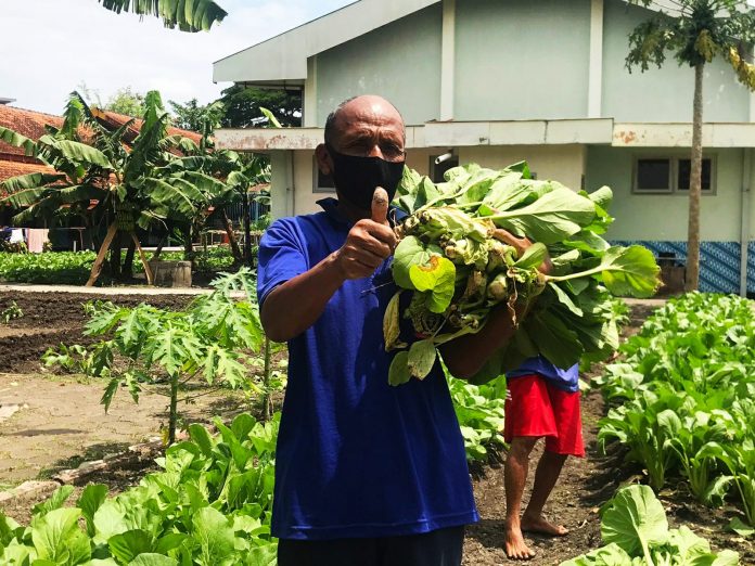 “Hasil panen sayuran sawi ini akan digunakan untuk konsumi warga binaan dan sebagian dijual ke masyarakat.” terang Marjiyanto