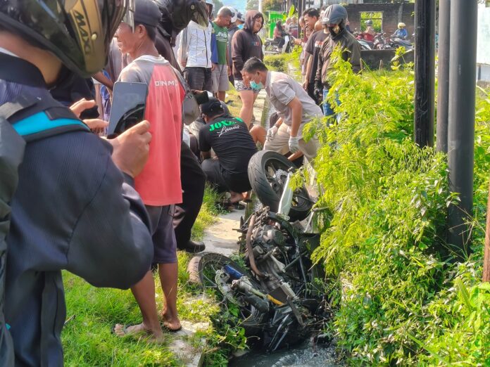“Sepeda motor Honda CBR beserta pengendaranya terpental dan jatuh ke selokan.” Jelasnya.
