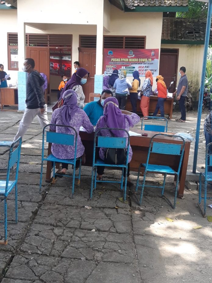 SAPTOSARI ( fakta9.com ) _ _// Sebagai upaya pencapaian 70% Vaksinasi kepada masyarakat, Kalurahan Kanigoro laksanakan Vaksinasi massal di halaman Kantor Kalurahan pada hari Senin ( 23/08/2021 ).