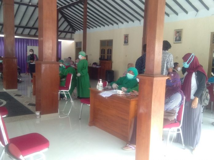 KARANGMOJO, (fakta9.com)__//Warga Kalurahan Kelor, Kapanewon Karangmojo, Kabupaten Gunungkidul, antusias merima vaksinasi dosis 1 dan 2 yang dilaksanakan di Pendopo Kantor Kalurahan Kelor, Selasa, (21/9/2021).