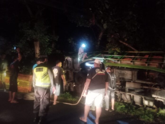 Meski demikian, untung saja sopir beserta kernetnya berinisial YA (37) warga Semanu, Gunungkidul tidak mengalami luka.