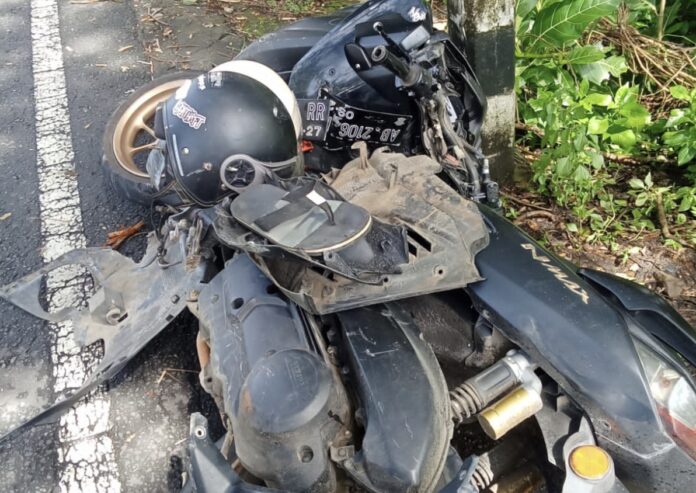 GUNUNGKIDUL, DIY (FAKTA9.COM)_ _// Sebuah sepeda motor Yamaha N Max menabrak pembatas jalan di Timur Hotel Santika Logandeng, Playen, Gunungkidul, Sabtu (17/01/2026) pukul 09.00 WIB.
